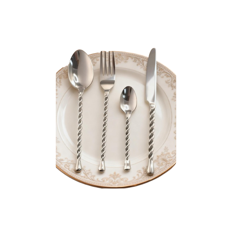 Ménagère Inox 24 pièces couteau table en Inox Forgé 18.10 de la gamme Palmier Torsadé. Nos couverts forgés réalisés en acier inoxydable de haute qualité ajouteront à votre table une note d'authenticité et d'élégance. La qualité des matériaux utilisés nous permettent de les garantir 10 ans.
