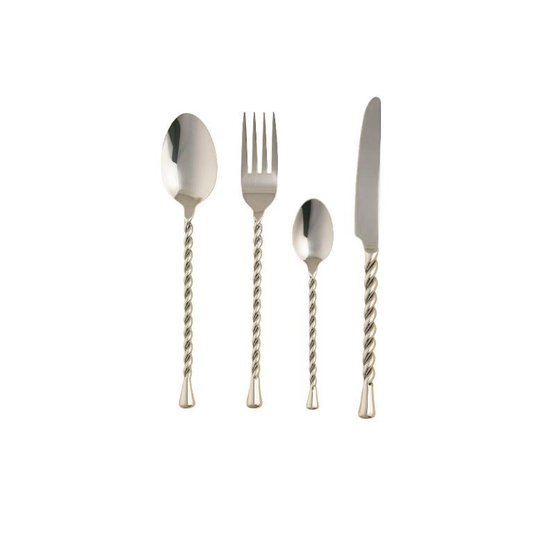 Ménagère 16 couverts de la collection Palmier torsadé, idéale pour 4 personnes. Parfaite pour une jeune famille ou un premier équipement, elle réunit tous les couverts essentiels pour les repas du quotidien comme pour les moments conviviaux.