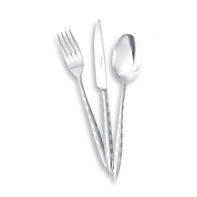 L’inox 18.10 garantit une excellente résistance à la corrosion, une brillance durable et une compatibilité lave-vaisselle. La finition contrastée sublime les reflets et met en valeur le décor Marelle pour une table élégante et lumineuse. Adaptée à un usage domestique comme professionnel, cette ménagère allie esthétique, solidité et facilité d’entretien.