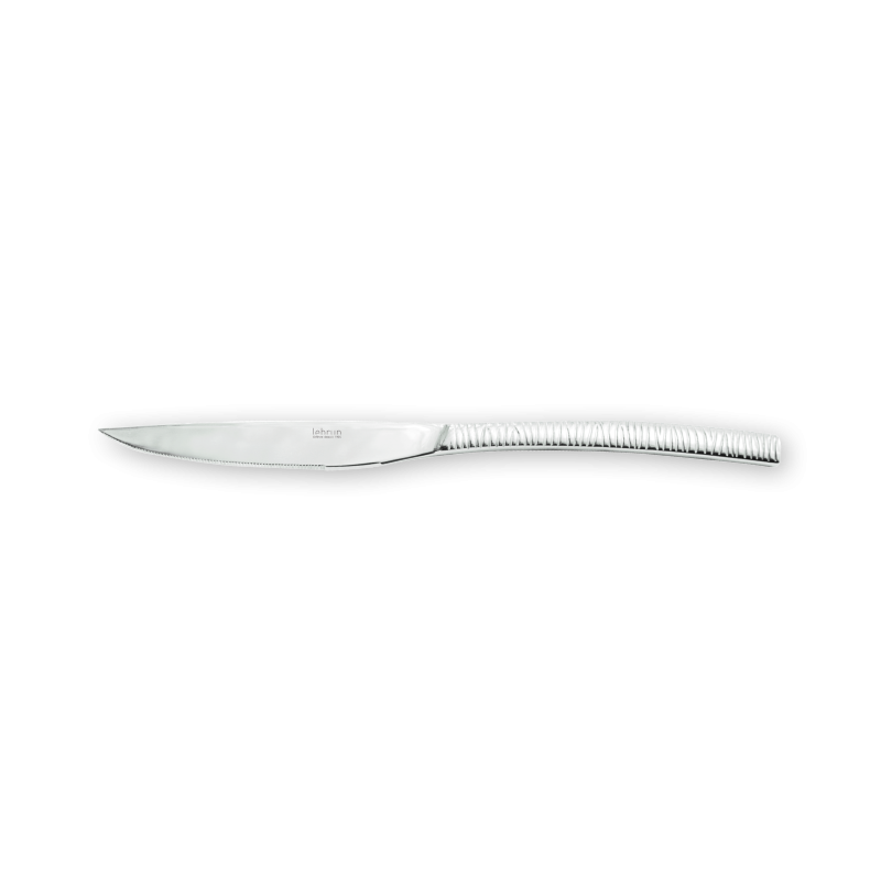 Couteau Steak en Inox 18.0 avec finition miroir strié, issue de la collection RESSAC, se distingue par son design harmonieux et sa brillance raffinée. Leur fabrication soignée garantit un entretien facile et une grande durabilité au quotidien.